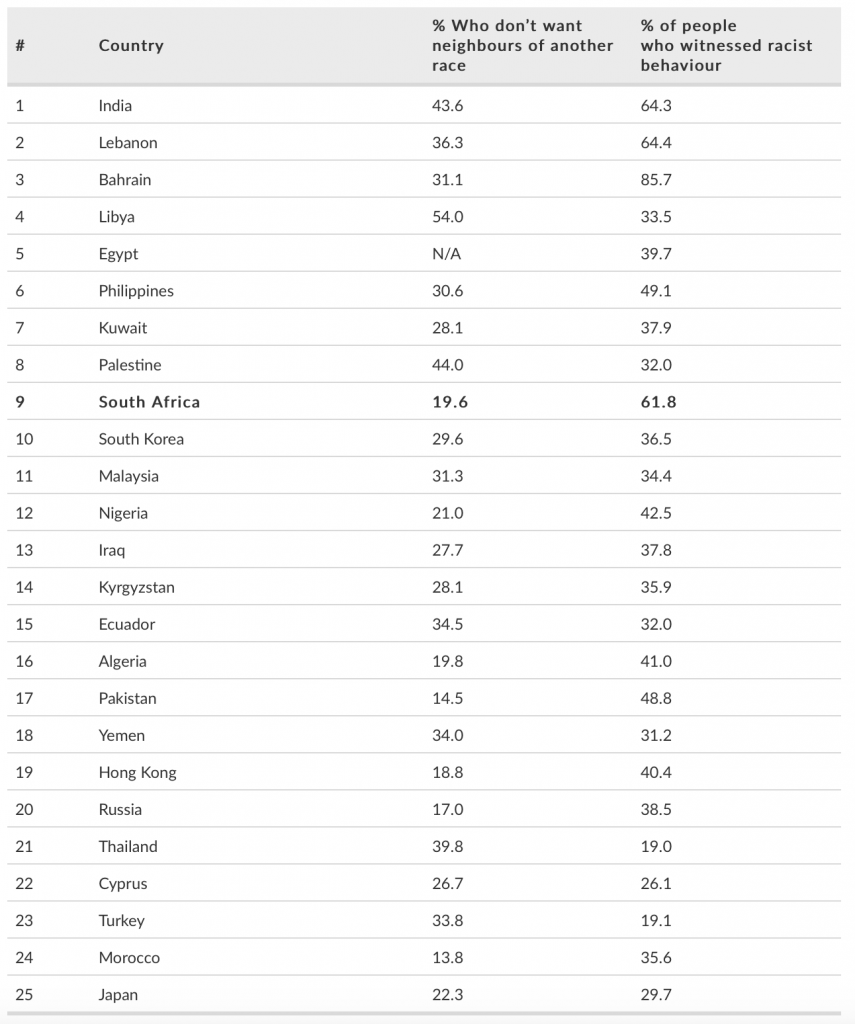 Recently, I had a chance to see a website that published the rankings of “the most racist countries in the world”. The website is named “business tech”.